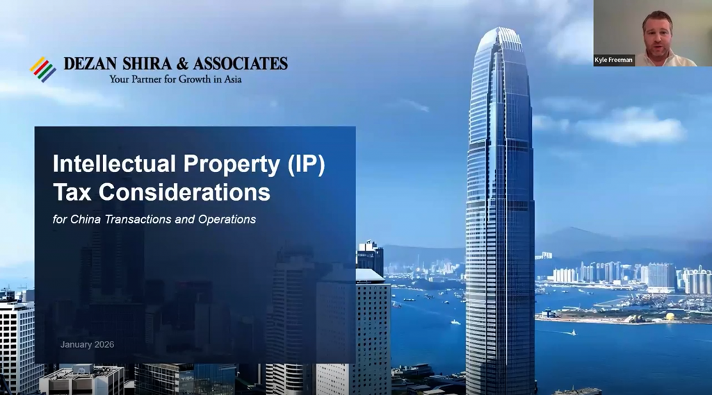 The webinar featured insights from Kyle Freeman, Partner and Head of the North American Desk at Dezan Shira & Associates, and Eunice Wu, IP Partner at Merits & Tree Law Offices, who addressed critical considerations for businesses navigating China’s evolving regulatory environment.