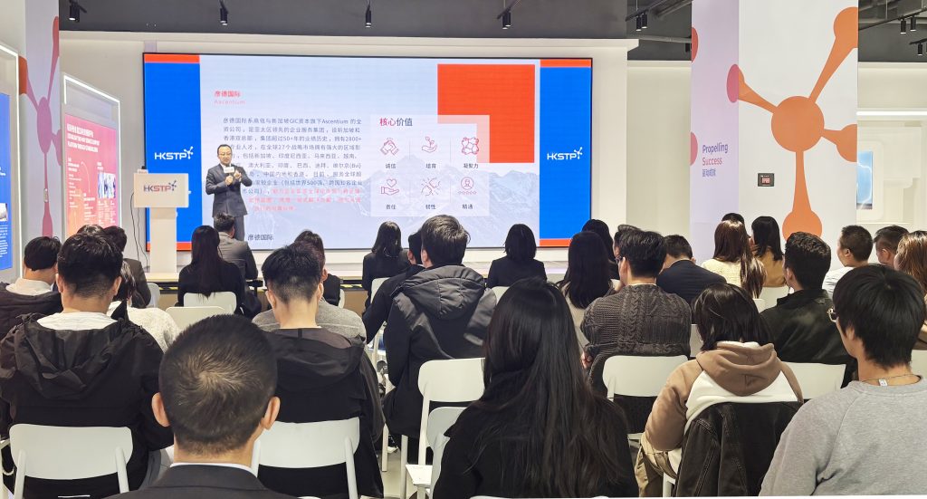 Ethan Hu, Business Development Manager at HKSTP, introduced how the Hong Kong–Shenzhen innovation ecosystem supports enterprises in connecting Greater Bay Area R&D resources with global opportunities. He also highlighted HKSTP’s comprehensive facilities and support infrastructure designed to help technology companies scale from the Greater Bay Area to global markets.